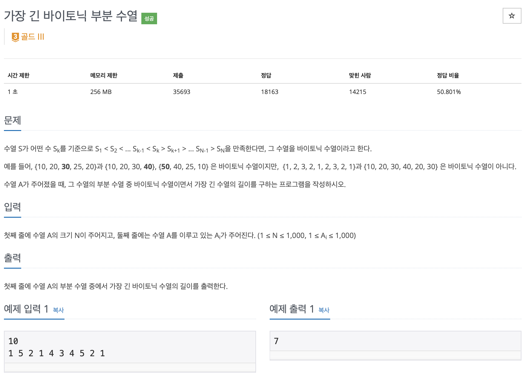 백준 11054(가장 긴 바이토닉 부분 수열) - Python(파이썬),Java(자바) - DP