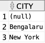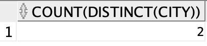 For example, if there are three records in the table with CITY values 'New York', 'New York', 'Bengalaru', there are 2 different city names: 'New York' and 'Bengalaru'. The query returns , because .