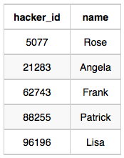 - Hackers: The hacker_id is the id of the hacker, and name is the name of the hacker.