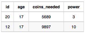 - Wands: The id is the id of the wand, code is the code of the wand, coins_needed is the total number of gold galleons needed to buy the wand, and power denotes the quality of the wand (the higher the power, the better the wand is).