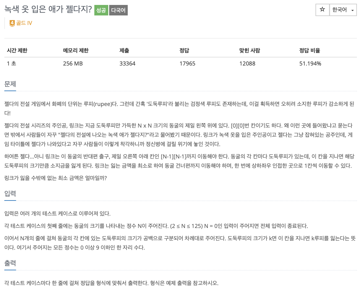 https://www.acmicpc.net/problem/4485