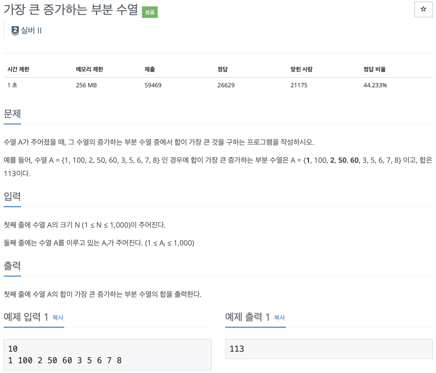 https://www.acmicpc.net/problem/11055
