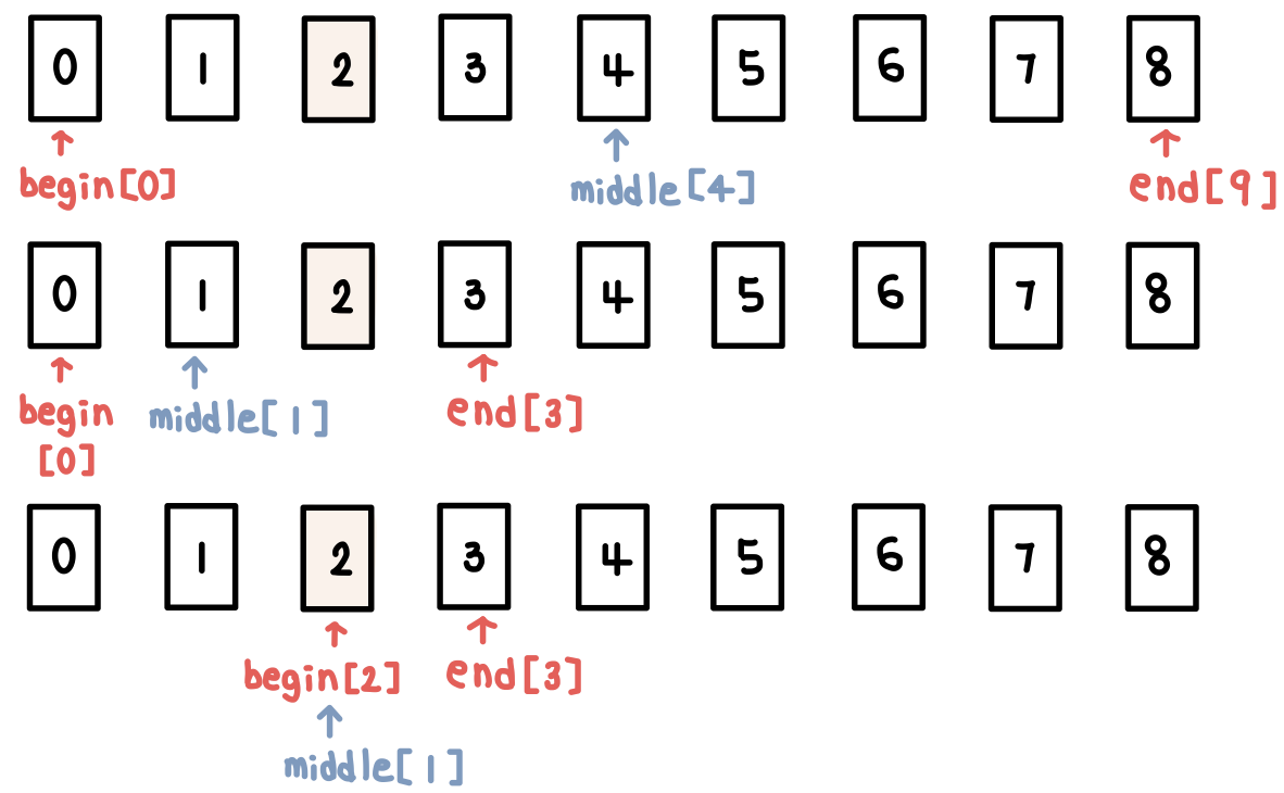 # 중간점의 값이 찾고자 하는 값보다 큰 경우 왼쪽에 위치