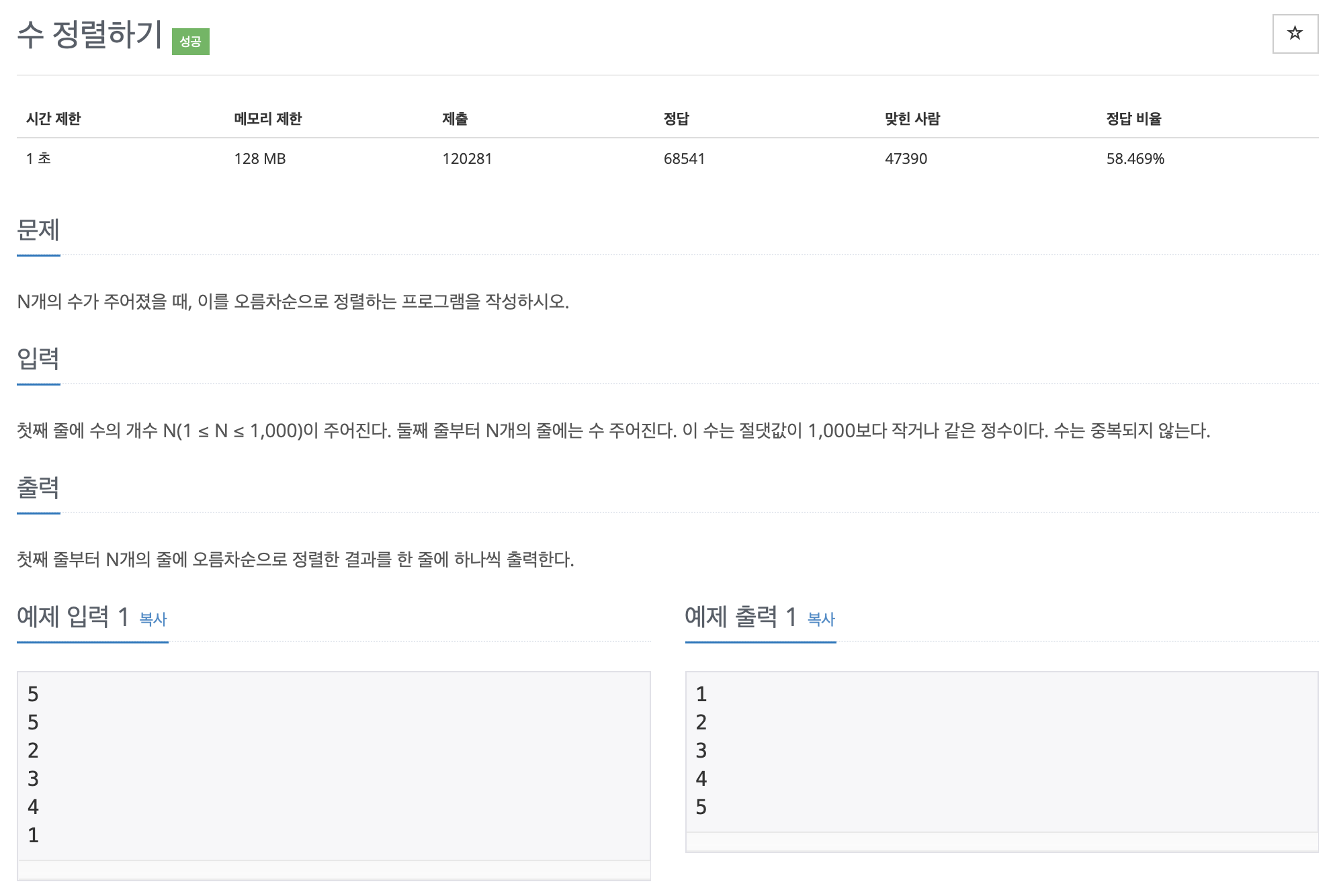 2750번: 수 정렬하기